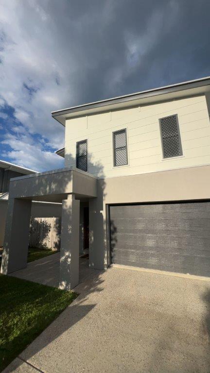 A List Painting Services recently completed a striking exterior repaint of a modern two-storey home on Godwin Place, delivering a fresh and sophisticated look. The home features a smart combination of Dulux colours—Dune, Surfmist, and Lexicon Quarter—carefully applied to highlight the building’s layered architecture. The lower level was coated in the warm, grounded tones of Dune, adding depth and presence to the façade, while the upper level was brightened with the lighter Lexicon Quarter, creating a crisp contrast that visually lifts the design.